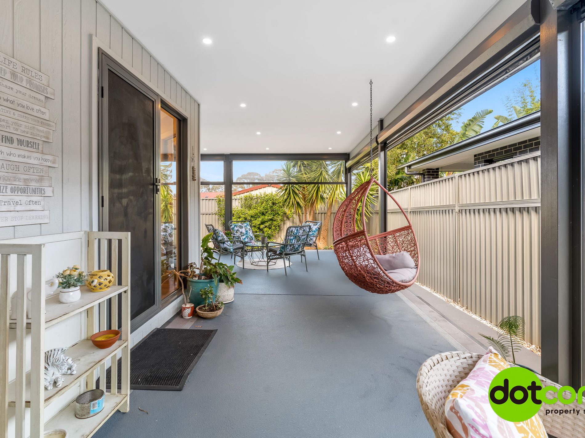 ✔ Covered alfresco area with clear patio blinds – perfect for year-round entertaining